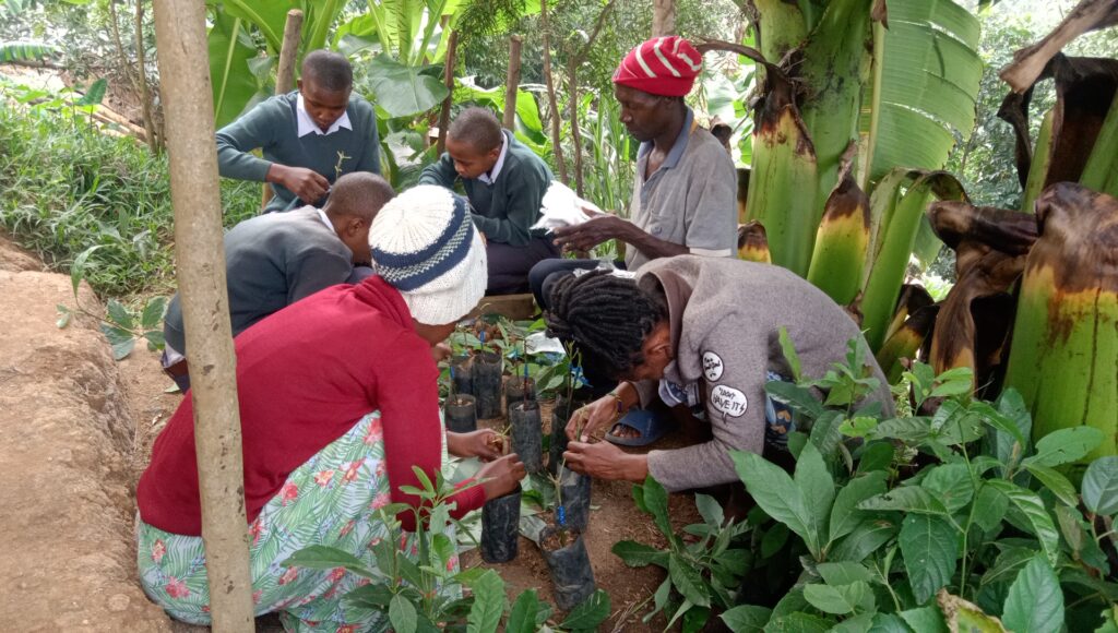 At Mbelei Secondary School, they needed more help with grafting avocado trees. So, the SEPA organization brought a grafting expert. This expert’s job was to train three students—Bakari, Emmanuel, and Musa—who already knew a bit about grafting. SEPA representatives Aneth Ndyetabula (Chairperson) and Swaum Kibira (Executive Secretary) were there to help too.